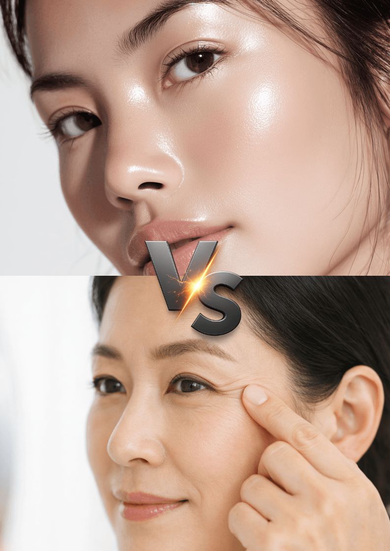 - 충분한 수분 섭취: 몸속 수분 밸런스가 깨지면 피부는 푸석해지고 탄력을 잃습니다. 하루 2리터 이상의 물을 꾸준히 마셔 세포에 수분을 공급하고 <노폐물 배출>을 원활하게 합니다.