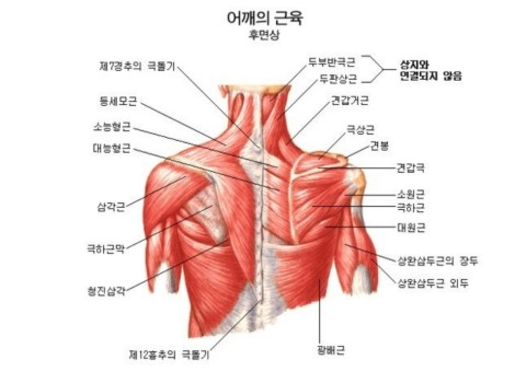 앞서 말씀드렸듯 근막은 하나로 연결되어 있기 때문에, 짧아진 다리와 틀어진 골반은 결국 척추를 타고 올라와 뒷목과 어깨를 강하게 잡아당깁니다.